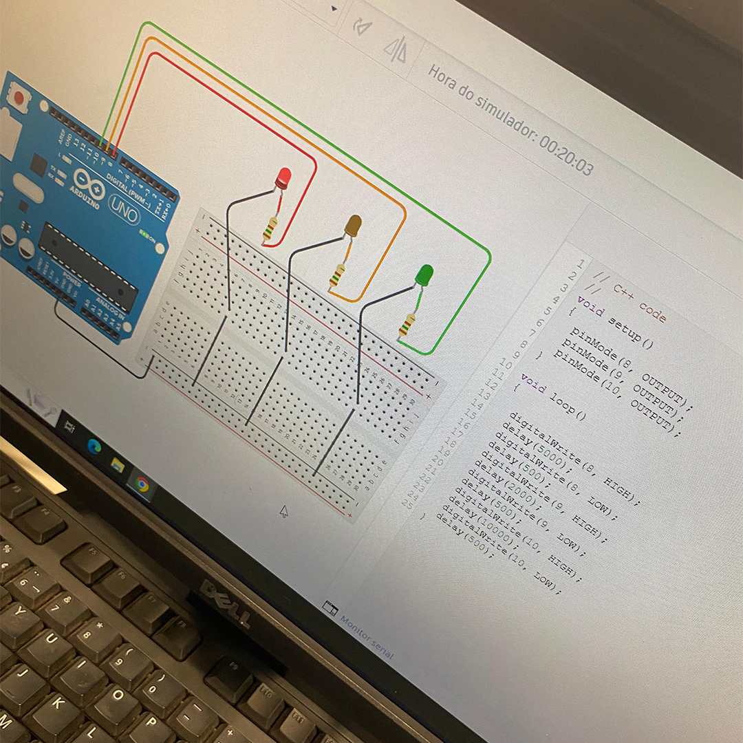Ao executar o código, os três LEDs acenderam conforme o esperado, de acordo com a programação.