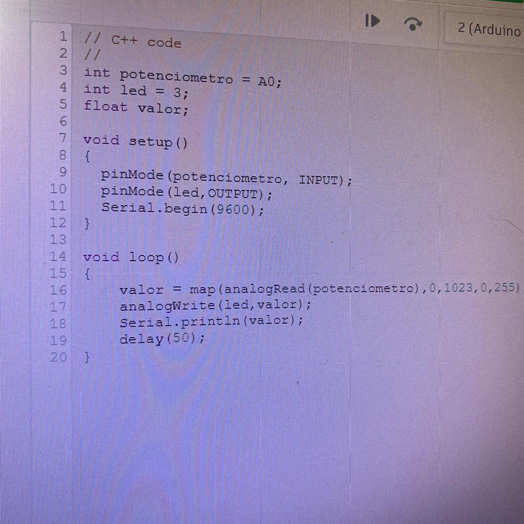 para controlar o LED. Em seguida, ele lê o valor do potenciômetro, que varia de 0 a 1023. Esse