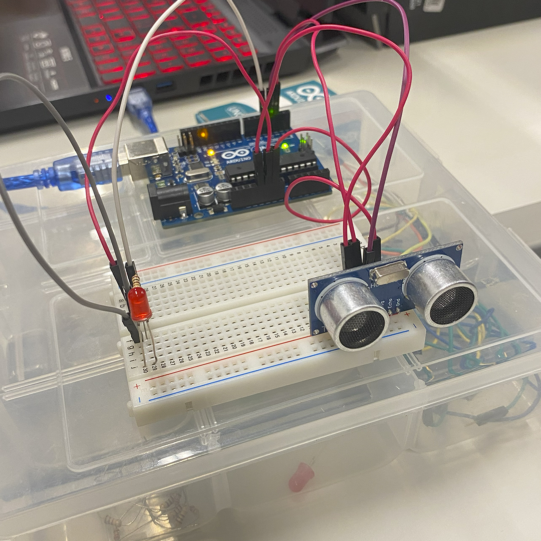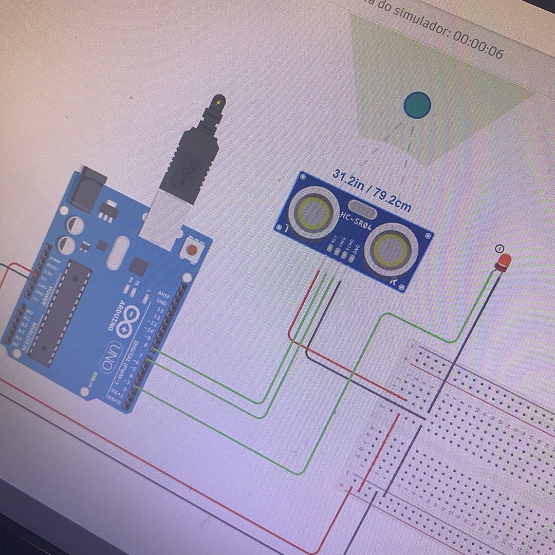 O projeto utiliza um sensor ultrassônico (HC-SR04) para medir distâncias e acionar um LED com