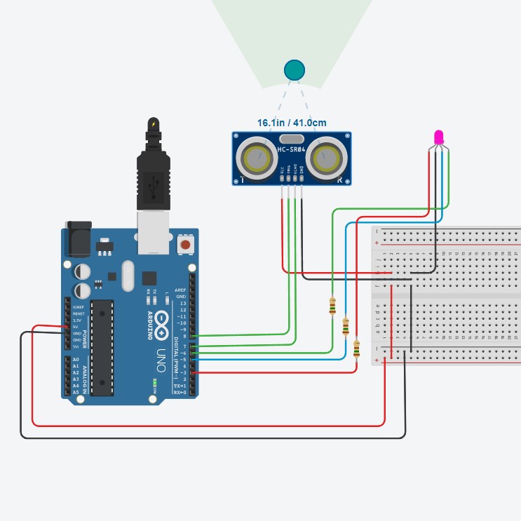 ultrassônico. Dependendo da proximidade do objeto, o LED mudará de cor para representar