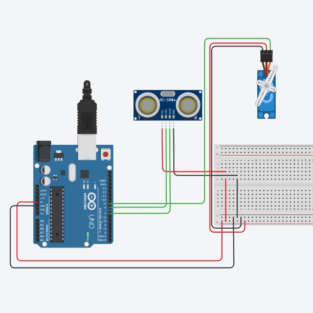 Controlar a rotação de um servo motor com base na distância medida por um sensor ultrassônico. O servo